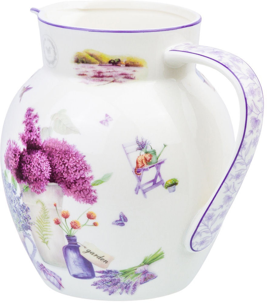 Кувшин серии «Лаванда» объемом 1,4 л украсит сервировку стола, выполнен из высококачественного костяного фарфора нового поколения, благодаря современным технологиям фарфор «New Bone China» не уступает традиционному костяному фарфору в прозрачности, белизне и прочности, но при этом гораздо экологичнее в производстве.
