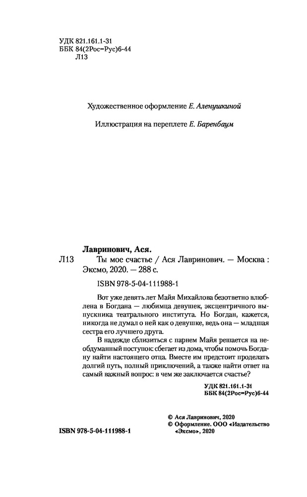 Здравствуйте, ждала эту книгу 5 дней. Я её уже прочитала. Очень интересный сюжет и присутствует летняя атмосфера😍🔥 Майя и Богдан милая пара, Ася Лавринович очень хороший автор💓 Буду заказывать все книги от этого автора, постепенно ✊🏼