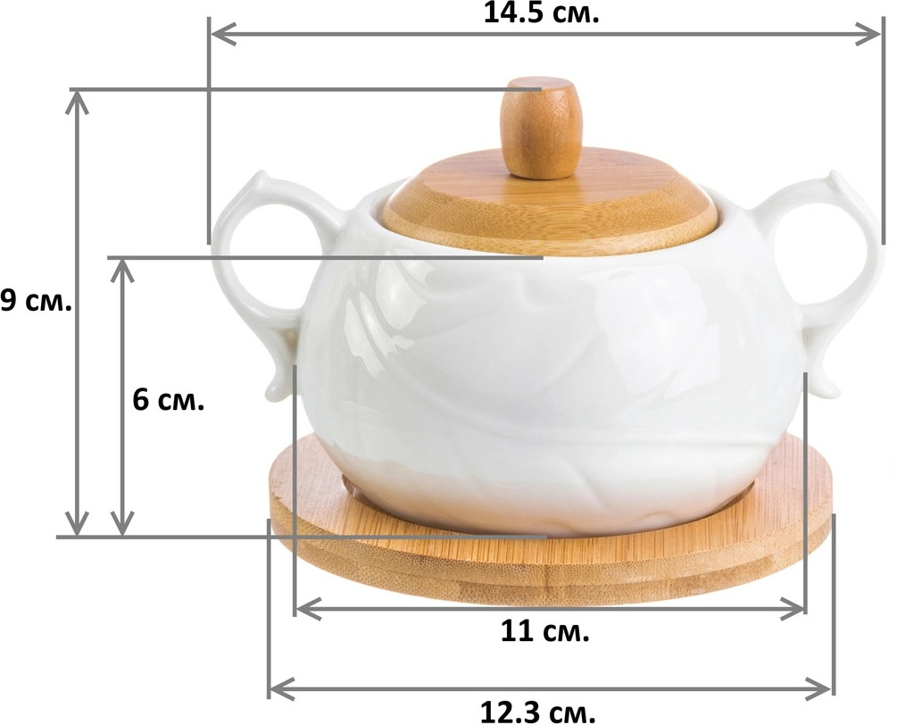 Elan Gallery Сахарница с ложкой на деревянной подставке «Айсберг»В данный момент этот товар отсутствует в продаже. Возможно, у нас найдется аналогичный или похожий товар здесь. Серия: Айсберг Сахарница из серии «Айсберг» с деревянной крышкой, фарфоровой ложкой и деревянной подставкой выполнена из высококачественного фарфора и натурального бамбука. Приятное цветовое решение, изящный рельефный рисунок на фарфоре и удобство использования делают эту сахарницу желанным подарком любой хозяйке. В серии фарфоровой посуды с использованием бамбука представлен широкий ассортимент товаров для сервировки стола, которые, несомненно, впишутся в любой интерьер благодаря лаконичному дизайну, натуральным материалам и высокой функциональности. |