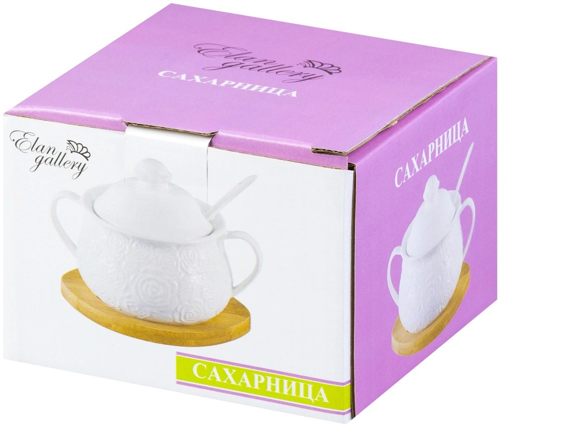 Elan Gallery Сахарница с ложкой на деревянной подставке «Розы»-20% +123