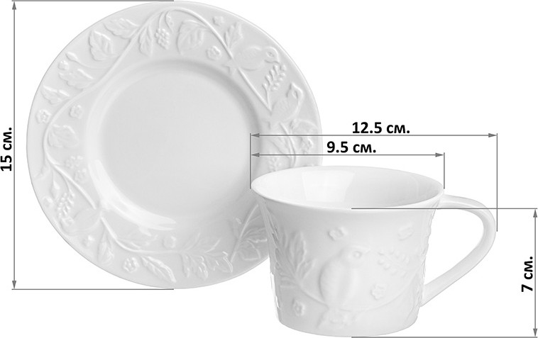 💳 Оплатить за товар можно при получении 🇰🇿 Есть бесплатная доставка по Казахстану от 1 дня 🎁 Копите бонусы с каждой покупки Серия: Птички на ветке Чайный набор «Птички на ветке» состоит из 6 чашек и 6 блюдец. Набор выполнен из высококачественного фарфора с красивым рельефным рисунком на чашке и блюдце. Чашка вместительная, с удобной ручкой прекрасно подходит для чая и кофе. В серии посуды из белого фарфора представлен широкий ассортимент товаров для сервировки стола, которые, несомненно, впишутся в любой интерьер благодаря лаконичному дизайну, натуральным материалам и высокой функциональности. |