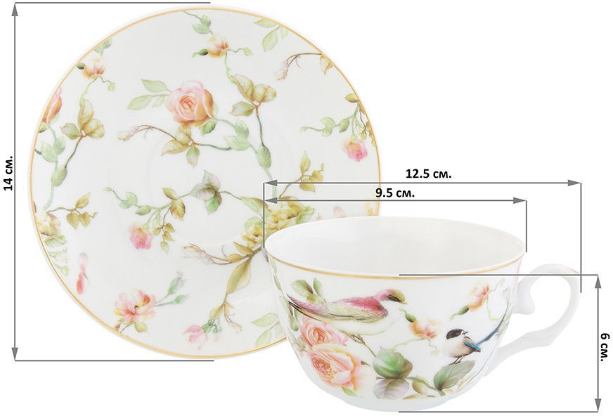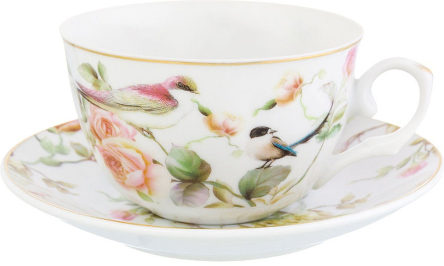 Elan Gallery Набор чайный «Певчие птички»-20% +157 тонкий фарфор легкая чашка красивый рисунок плотное блюдце