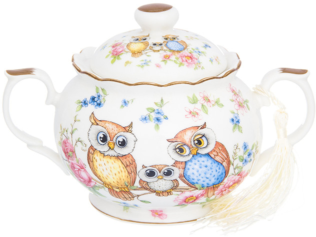 Серия: Совушки Сахарница из серии «Совушки» станет приятным и уютным украшением на любой кухне. Выполнена из высококачественного костяного фарфора нового поколения. Благодаря современным технологиям фарфор New Bone China не уступает традиционному костяному фарфору в прозрачности, белизне и прочности, но при этом гораздо экологичнее в производстве. Сахарница вместительная, изящной формы, с живописным рисунком с особенным летним настроением. |