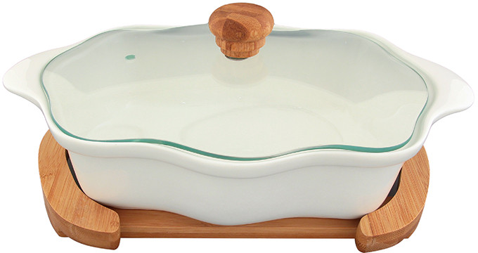 💳 Оплатить за товар можно при получении 🇰🇿 Есть бесплатная доставка по Казахстану от 1 дня 🎁 Копите бонусы с каждой покупки Серия: Айсберг Блюдо для запекания и сервировки серии «Айсберг» с крышкой и деревянной подставкой выполнено из высококачественного фарфора, который выдерживает высокие температуры и прекрасно подходит для использования в духовке и микроволновой печи. Важно знать, что в микроволновой печи можно использовать только фарфоровую часть блюда, так как бамбук не предназначен для воздействия микроволн. Блюдо прямоугольной формы с ушками и фигурными бортами и изящной подставкой, на которой очень удобно сервировать горячее блюдо к столу. |