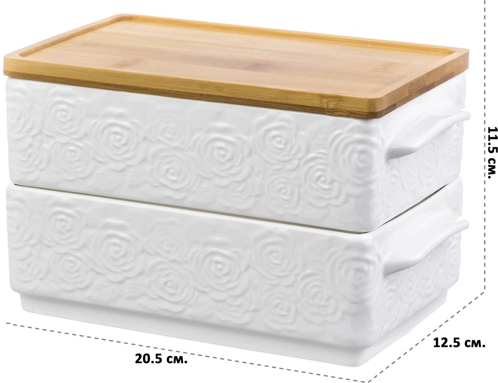 💳 Оплатить за товар можно при получении 🇰🇿 Есть бесплатная доставка по Казахстану от 1 дня 🎁 Копите бонусы с каждой покупки Серия: Белые розы Набор из 2 блюд для холодца «Розы» украсит стол и позволит сохранить еду свежей благодаря крышке. Красиво смотрится на столе и удобно размещается в холодильнике. Изготовлены из белоснежного фарфора, имеют ручки и украшены узорами из роз. Бамбуковая крышка идеально дополняет образ. В серии посуды из белого фарфора представлен широкий ассортимент товаров для сервировки стола, которые, несомненно, впишутся в любой интерьер благодаря лаконичному дизайну, натуральным материалам и высокой функциональности. Такому подарку будет рада любая хозяйка! |