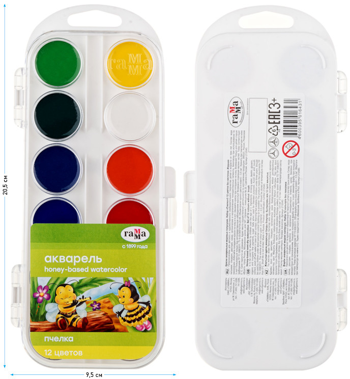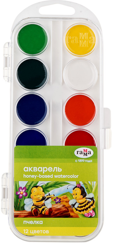 Медовая акварель Гамма «Пчёлка» для детей дошкольного возраста. Подходит для школы и детских садов.