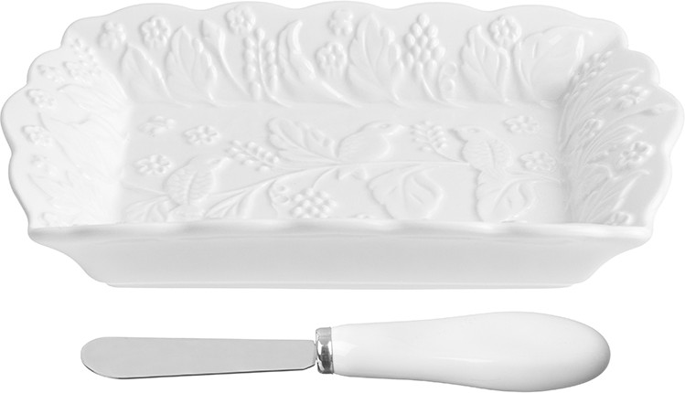 Elan Gallery Тарелка под масло «Птички на ветке»-30% +36 красивая качественный фарфор белая комфортный хват