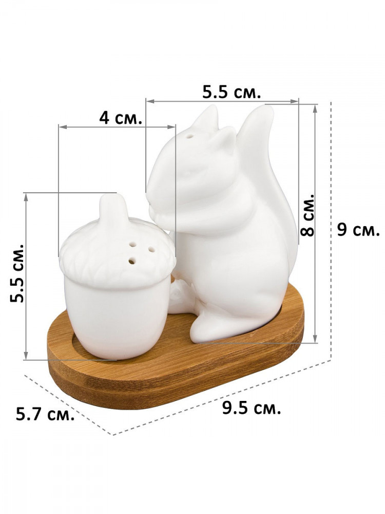 💳 Оплатить за товар можно при получении 🇰🇿 Есть бесплатная доставка по Казахстану от 1 дня 🎁 Копите бонусы с каждой покупки Набор для специй в виде белочки и ореха на деревянной подставке прекрасный пример высококачественной, удобной и лаконичной посуды для изящной сервировки стола. Перечница и солонка выполнены из прочного белого фарфора, а подставка из бамбука. Наполнить емкости для специй можно через отверстие в донышке, которое надежно закрывается пластиковой пробкой. |