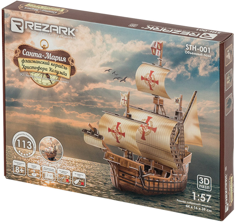 Rezark Конструктор деревянный «Корабли. Санта-Мария»В данный момент этот товар отсутствует в продаже. Возможно, у нас найдется аналогичный или похожий товар здесь. Торговая марка «Rezark» представляет недорогие детские развивающие наборы для сборки 3D-пазлов. В каждый набор входит пошаговая инструкция на русском языке. Пазлы представляют собой небольшие сборные 3D модели из плоских фанерных деталей. Толщина фанеры 3 мм. Для сборки моделей не требуется клей или клеевые материалы. Детали пазлов фиксируются между собой с помощью пазов. |