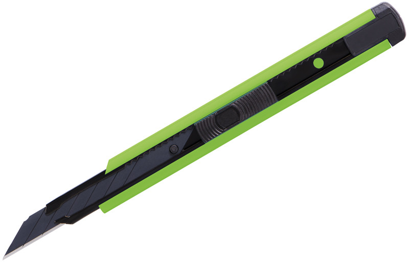 Нож канцелярский с автоматической системой фиксации лезвия auto-lock. Корпус ножа полностью металлический. Комплектуется износостойким стальным лезвием с углом 30 градусов черного цвета, для более легкого скольжения.