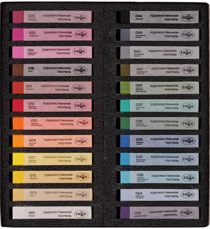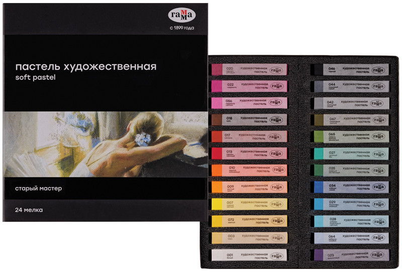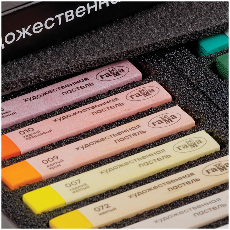 Набор сухой художественной пастели средней мягкости. Пастель легко наносится, смешивается и растушевывается. Цвета в наборе насыщенные, светостойкие. Мелки квадратной формы в индивидуальной бумажной гильзе с указанием цвета.