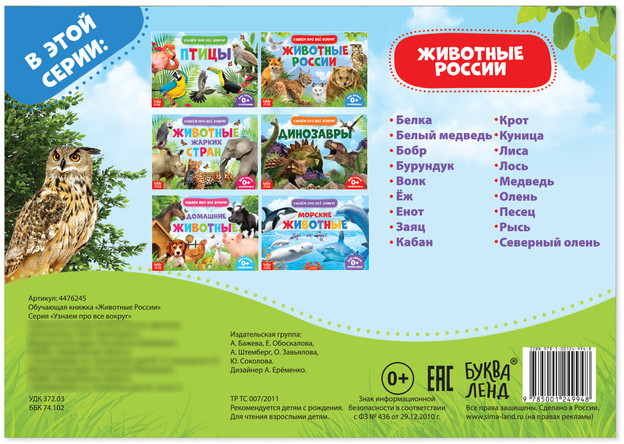 Обучающая книжка «Животные России», 18 животных — отличный вариант для тех родителей, которые привыкли окружать своего малыша только лучшими и качественными вещами. За такой книжкой ваш ребёнок проведёт время с пользой и удовольствием, узнает много нового и интересного. |