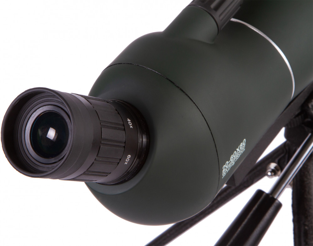 Оптика зрительной трубы сделана из стекла BK-7. На все оптические поверхности, соприкасающиеся с воздухом, нанесено несколько слоев просветляющего покрытия. Увеличение прибора можно плавно изменять в диапазоне от 20 до 60 крат. Благодаря большому световому диаметру объектива зрительная труба собирает много света, передавая ясную и контрастную картинку даже при облачной погоде или в сумерках. Окуляр снабжен кольцом диоптрийной коррекции, поэтому пользователь с неидеальным зрением сможет легко настроить оптику под свои требования. Большой вынос зрачка позволяет вести наблюдения в очках.