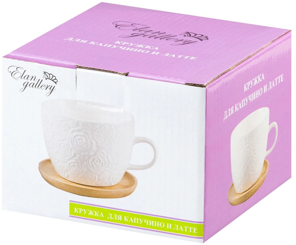 Elan Gallery Кружка для капучино и кофе латте «Розы»В данный момент этот товар отсутствует в продаже. Возможно, у нас найдется аналогичный или похожий товар здесь. Серия: Белые розы Чашка для капучино и латте из серии «Розы» объемом 500 мл с деревянной крышкой — подставкой выполнена из высококачественного фарфора и натурального бамбука. Теплое цветовое решение, изящный рельефный рисунок на фарфоре и удобство использования делают эту чашку желанным подарком любой хозяйке. У чашки большой объем, что позволит приготовить нужное количество напитка. В серии фарфоровой посуды с использованием бамбука представлен широкий ассортимент товаров для сервировки стола, которые, несомненно, впишутся в любой интерьер благодаря лаконичному дизайну, натуральным материалам и высокой функциональности. Такому подарку будет рада любая хозяйка! |