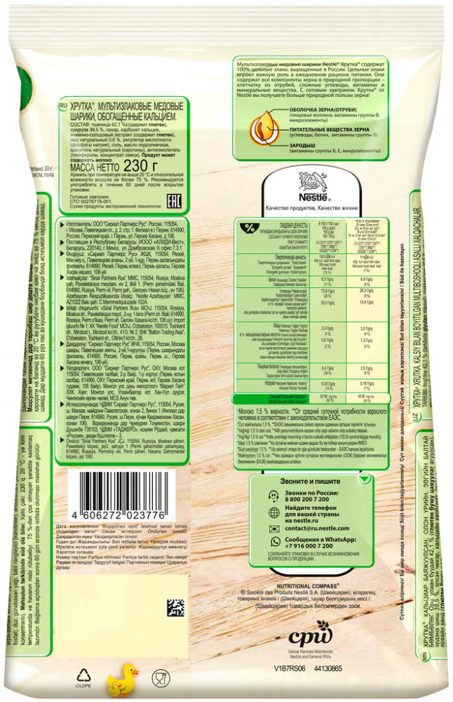 Кукурузные хлопья Хрутка производятся по высоким стандартам качества Nestlé из кукурузы, выращенной в России, без красителей и консервантов! |