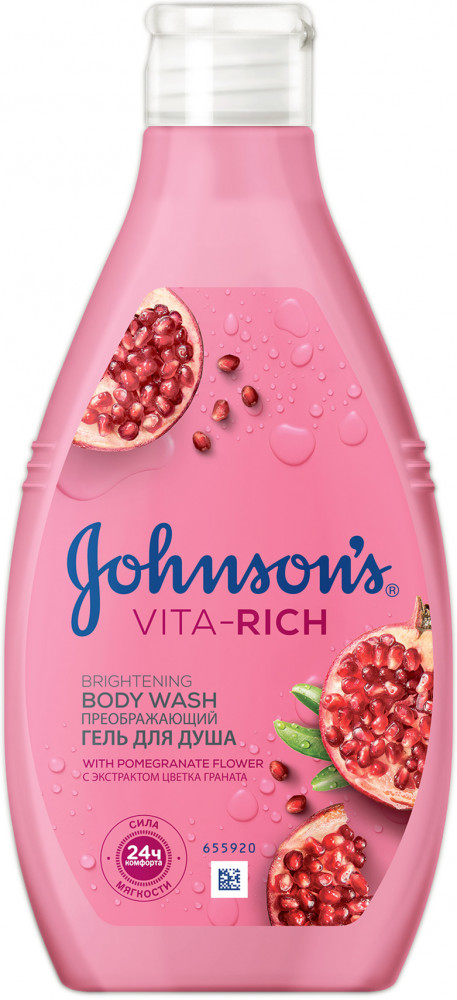 Johnson & Johnson Гель для душа с экстрактом цветка гранатаВ данный момент этот товар отсутствует в продаже. Возможно, у нас найдется аналогичный или похожий товар здесь. Преображающий гель для душа Johnson’s Body Care Vita Rich с экстрактом цветка граната (с ароматом граната). Насыщенная бархатистая формула с экстрактом цветка граната и увлажняющим глицерином активно увлажняет, помогает сделать кожу сияющей, придавая ей здоровый вид ощущение мягкости и обновления. |