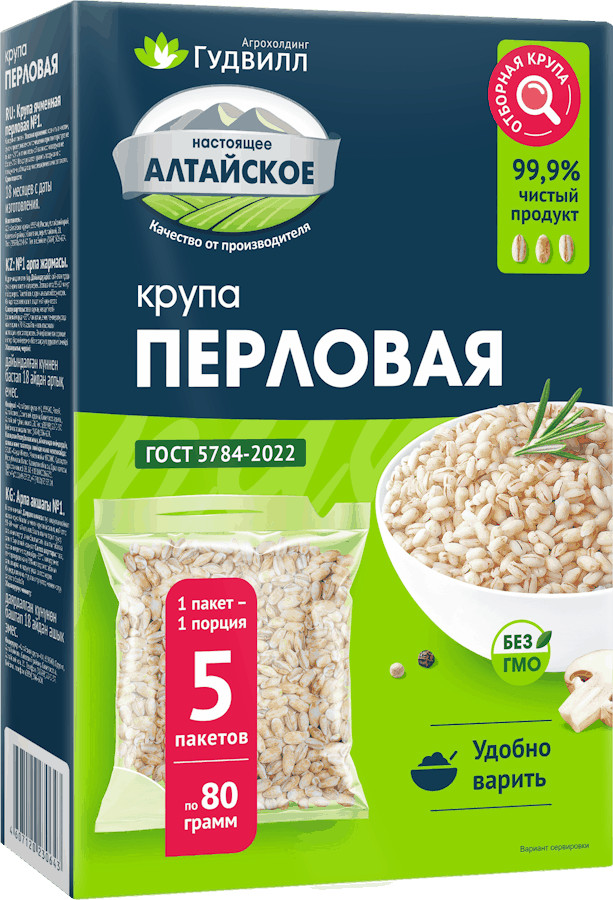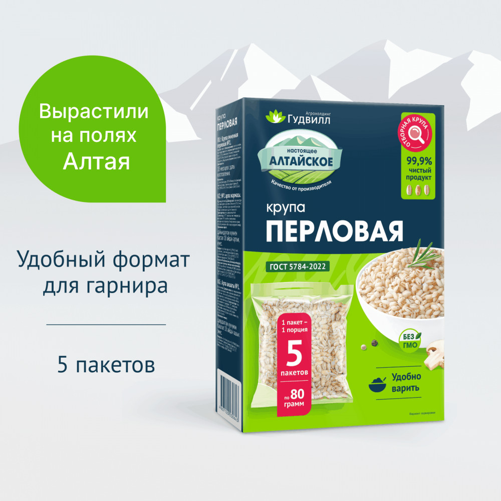 Гудвилл Крупа перловая в варочных пакетах+7 удобные пакетики холодная зона вкусная каша полезно для скороварки