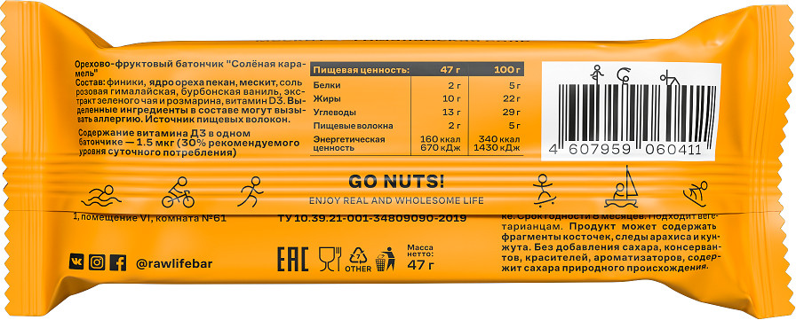 R.A.W. Life Батончик орехово-фруктовый «Солёная карамель»
