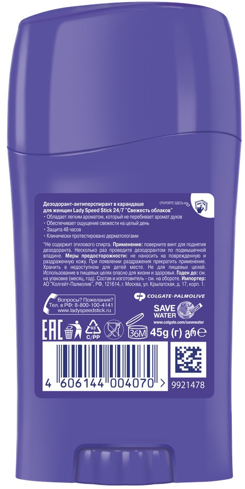 Lady Speed Stick Дезодорант-антиперспирант твердый «Свежесть облаков»В данный момент этот товар отсутствует в продаже. Возможно, у нас найдется аналогичный или похожий товар здесь. Дезодорант-стик не перебивает аромат ваших духов, дезодорант, свежий и легкий запах которого не перебивает аромат ваших духов, защита нон-стоп 24 часа от пота и запаха, обеспечивает ощущение свежести на целый день, клинически протестировано дерматологами. |