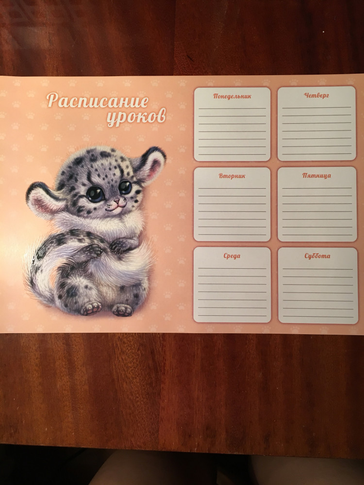 Расписание хорошее, картон плотный. Качество рисунка отличное. Очень нужная вещь, и цена отличная.