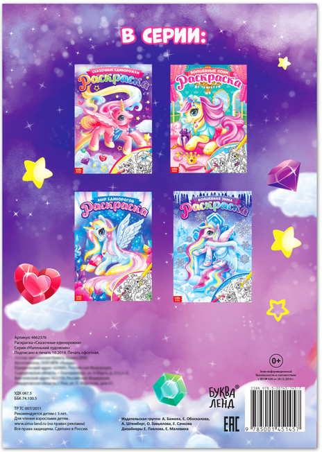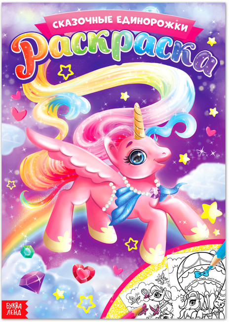 В данный момент этот товар отсутствует в продаже. Возможно, у нас найдется аналогичный или похожий товар здесь. Раскраска «Сказочные единорожки» — книга с контурными картинками. Малышка сможет их раскрасить карандашами, красками или фломастерами. Страницы и обложка выполнены из бумаги.