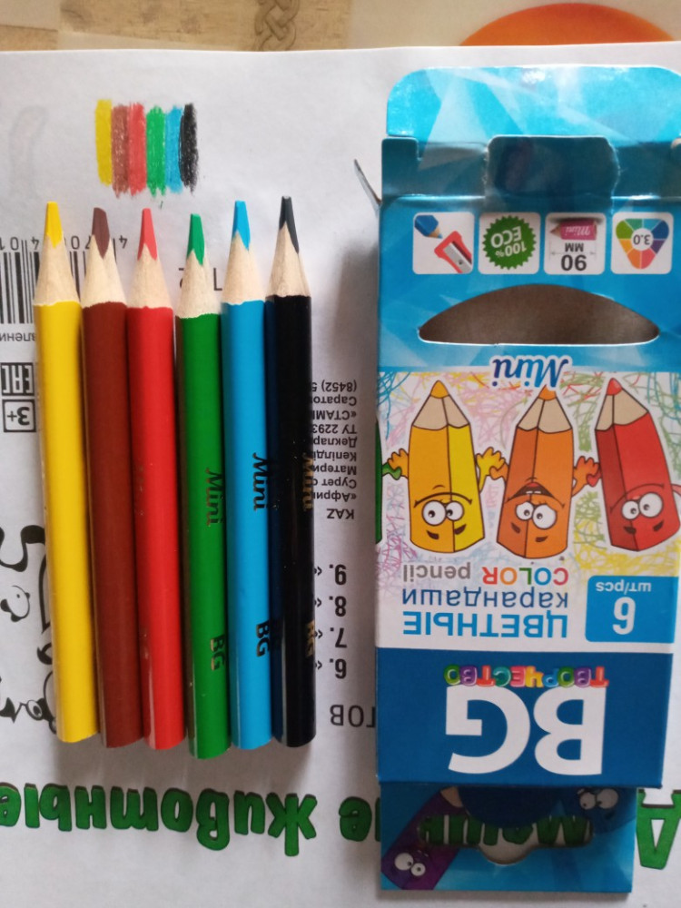 цвета яркие, рисуют мягко. хорошие карандашики. 8 см