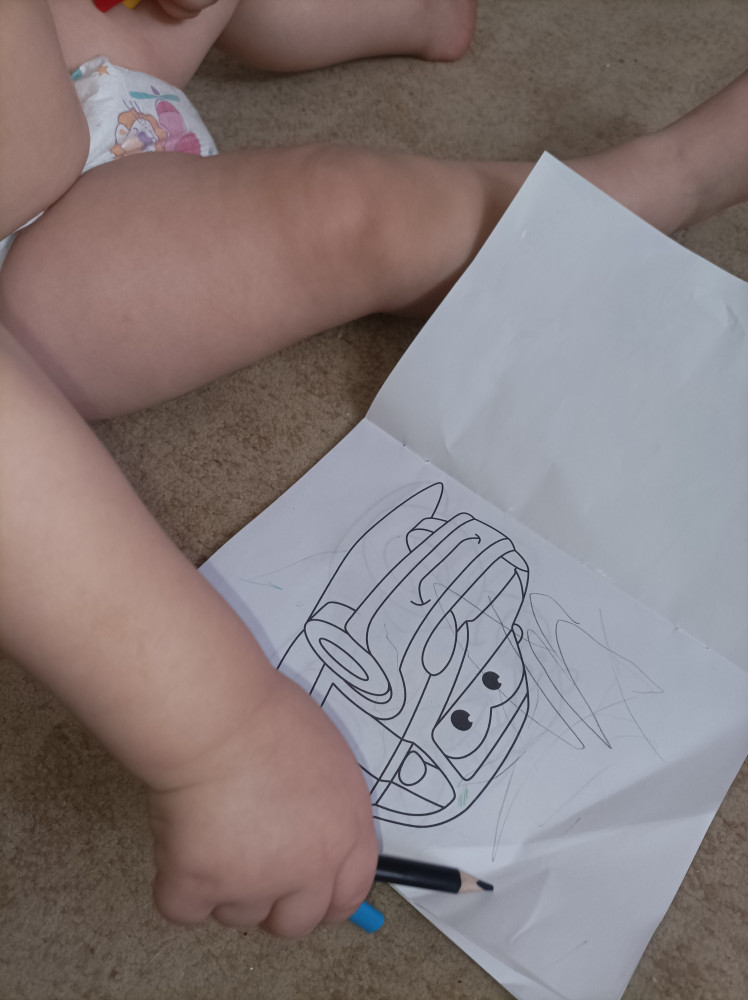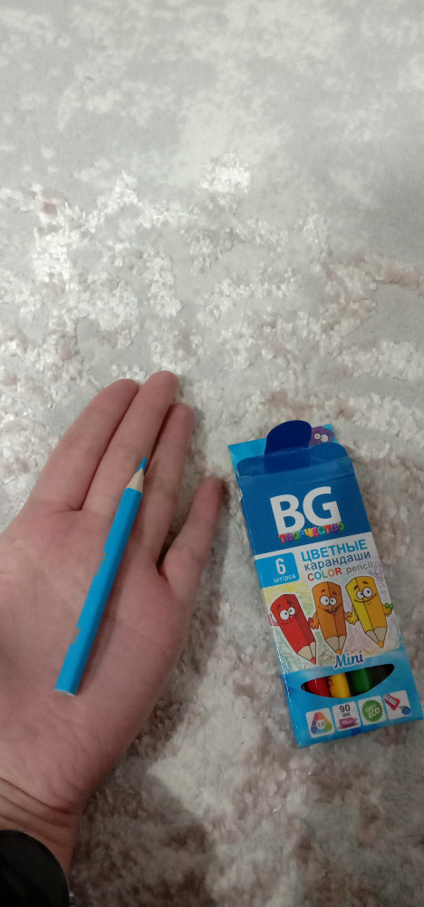 Карандашики маленькие, миленькие такие. Для нас самое то, сыну 1 год и 7 месяцев очень удобно в руке ему держать. Мягкие и яркие.