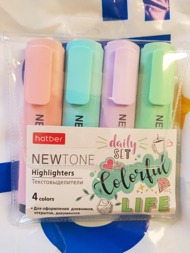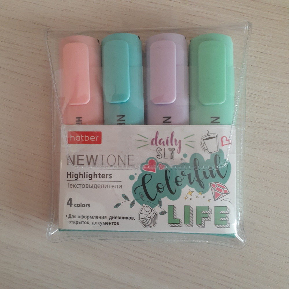 Сначала хотела купить только два цвета, но скидка на полный набор оказалась выше, поэтому заказала все цвета. Качественные, удобные, приятные цвета. При выделении текста не перекрывают его по цвету, поэтому отлично можно использовать при чтении книг, для выделения основных мыслей.