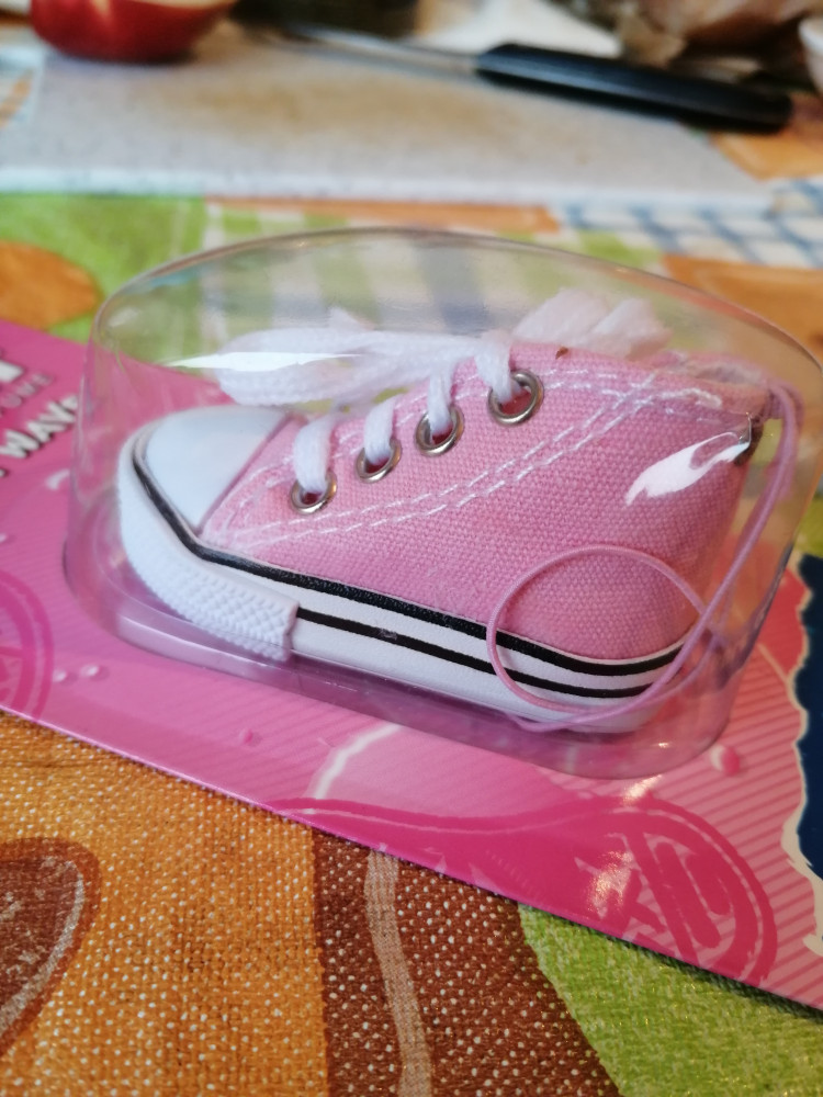 Купила в качестве подарочка-сувенира подруге. Запах не знаю какой, а выглядит супер - настоящий маленький и миленький кед.