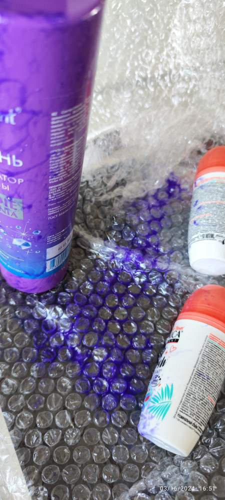 на фото видно, как доставили. первый раз такое. Я сама вожу и самолёте и в багаже шампунь постоянно. ни разу не протекало. заказывала у других магазинов, все было ок. но сегодня у меня все в протекшем шампуне, все испачкано и не приятно.....