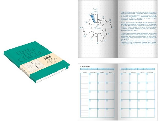Обратите внимание, что этот ежедневник подходит не всем. Как пишет предыдущий пользователь, что листы не чистые, там есть круг в виде диаграммы, по диаграмме время и там по стрелке пишешь свои заметки. Лично мне, такой подход планирования не подходит, визуально тяжело. Возможно нужно время чтобы привыкнуть. Но, я оставила блокнот и не собираюсь пользоваться. Наверное подарю тем, кто умеет пользоваться.