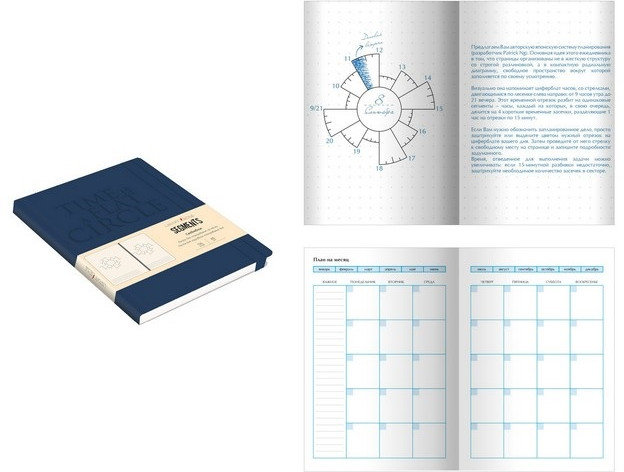 Обратите внимание, что этот ежедневник подходит не всем. Как пишет предыдущий пользователь, что листы не чистые, там есть круг в виде диаграммы, по диаграмме время и там по стрелке пишешь свои заметки. Лично мне, такой подход планирования не подходит, визуально тяжело. Возможно нужно время чтобы привыкнуть. Но, я оставила блокнот и не собираюсь пользоваться. Наверное подарю тем, кто умеет пользоваться.