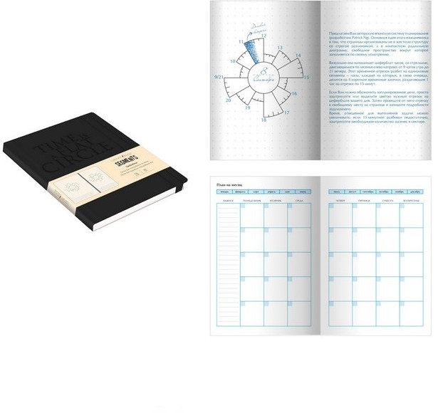 Обратите внимание, что этот ежедневник подходит не всем. Как пишет предыдущий пользователь, что листы не чистые, там есть круг в виде диаграммы, по диаграмме время и там по стрелке пишешь свои заметки. Лично мне, такой подход планирования не подходит, визуально тяжело. Возможно нужно время чтобы привыкнуть. Но, я оставила блокнот и не собираюсь пользоваться. Наверное подарю тем, кто умеет пользоваться.