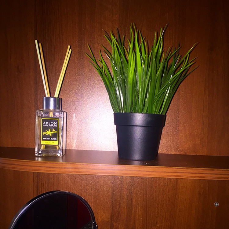 Аромадиффузор понравился. Взяла “Vanilla black”. Аромат ванили нежный, обволакивающий. А приятную терпкость ему придаёт кедр. Сначала поставила 2 палочки, но мне показалось недостаточным, поэтому через пару дней поставила ещё 2. Диффузор разместила в коридоре. Теперь нас встречает приятный аромат. Посмотрим, на сколько хватит флакона.