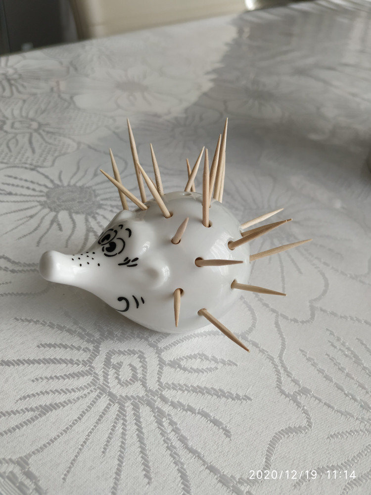 Маленький, милый, красивый ёжик, очень веселый, брали в подарок, очень симпатично смотрится с зубочистками и поднимает настроение! Отличный сувенир, рекомендую!