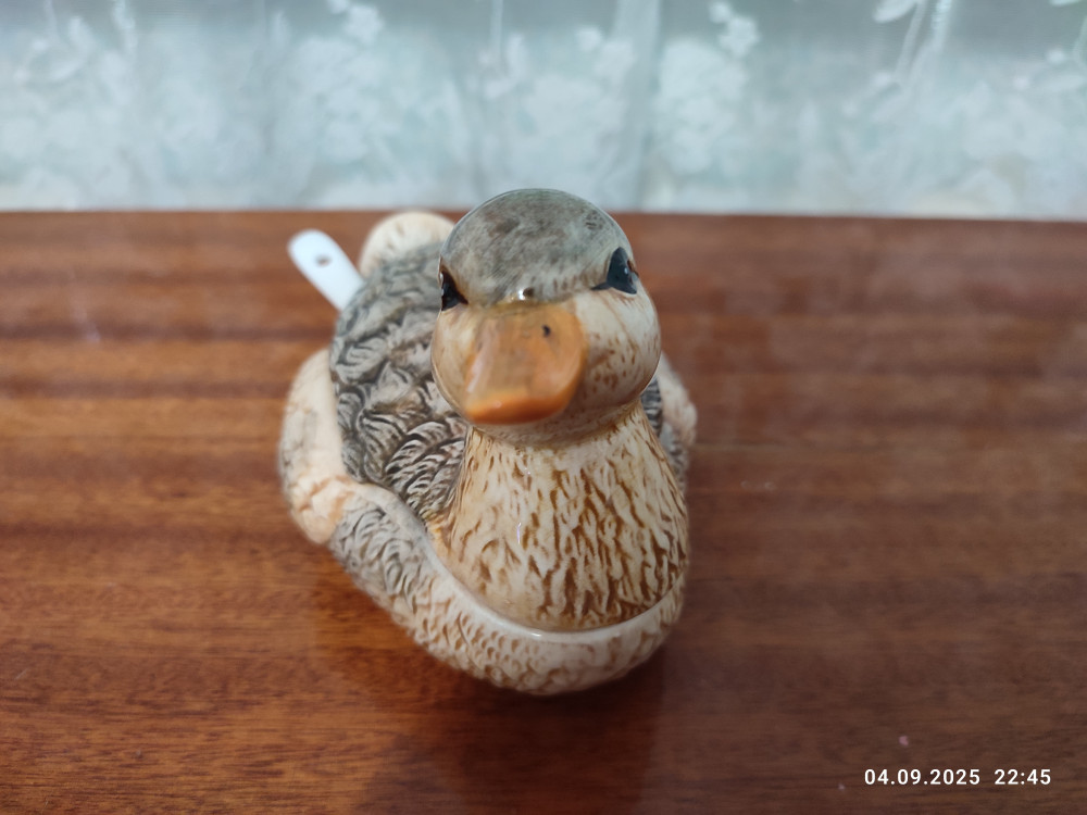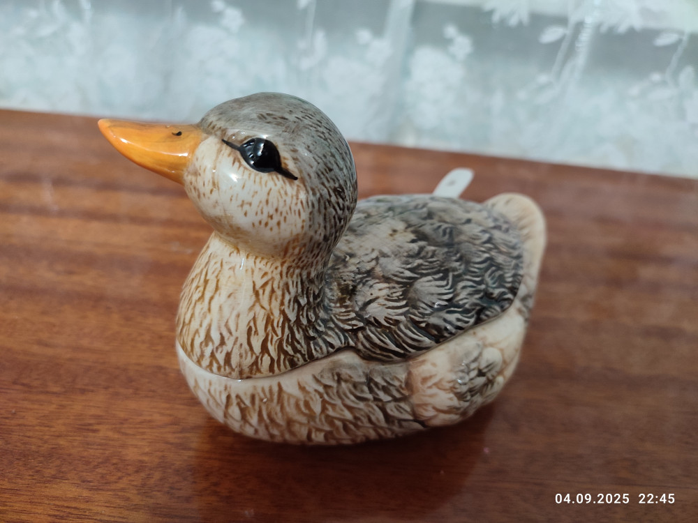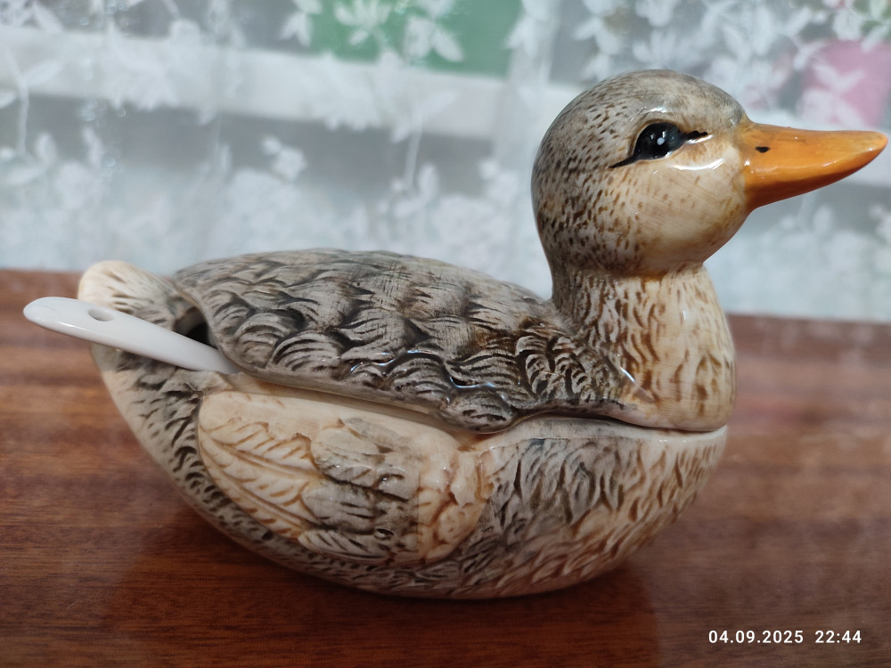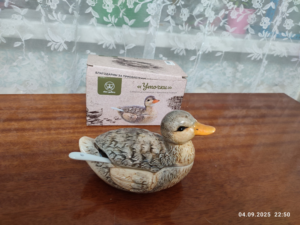 На столе круто смотрится, у меня вся серия уточек, осталось подкупить для специй и тарелку - салатницу