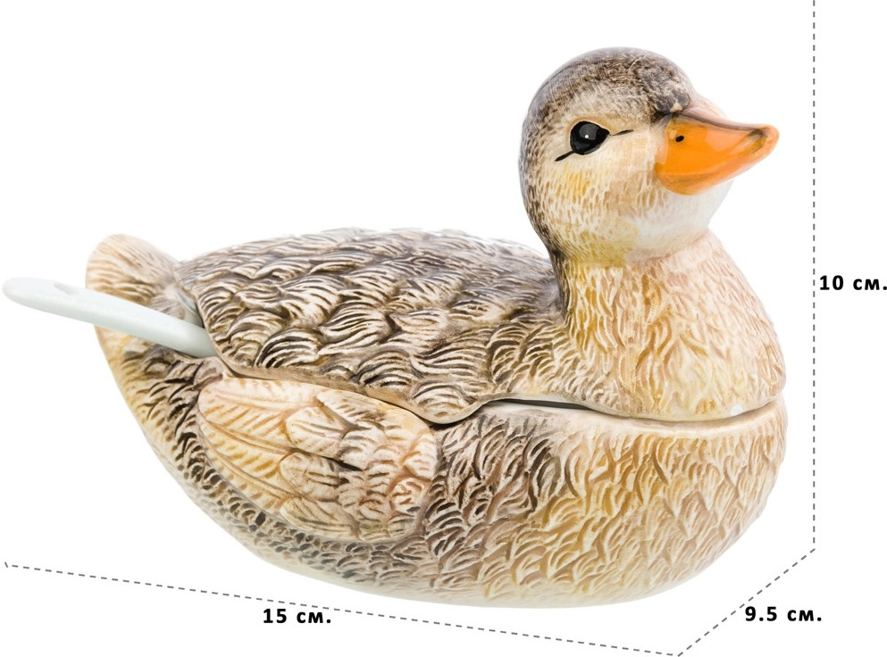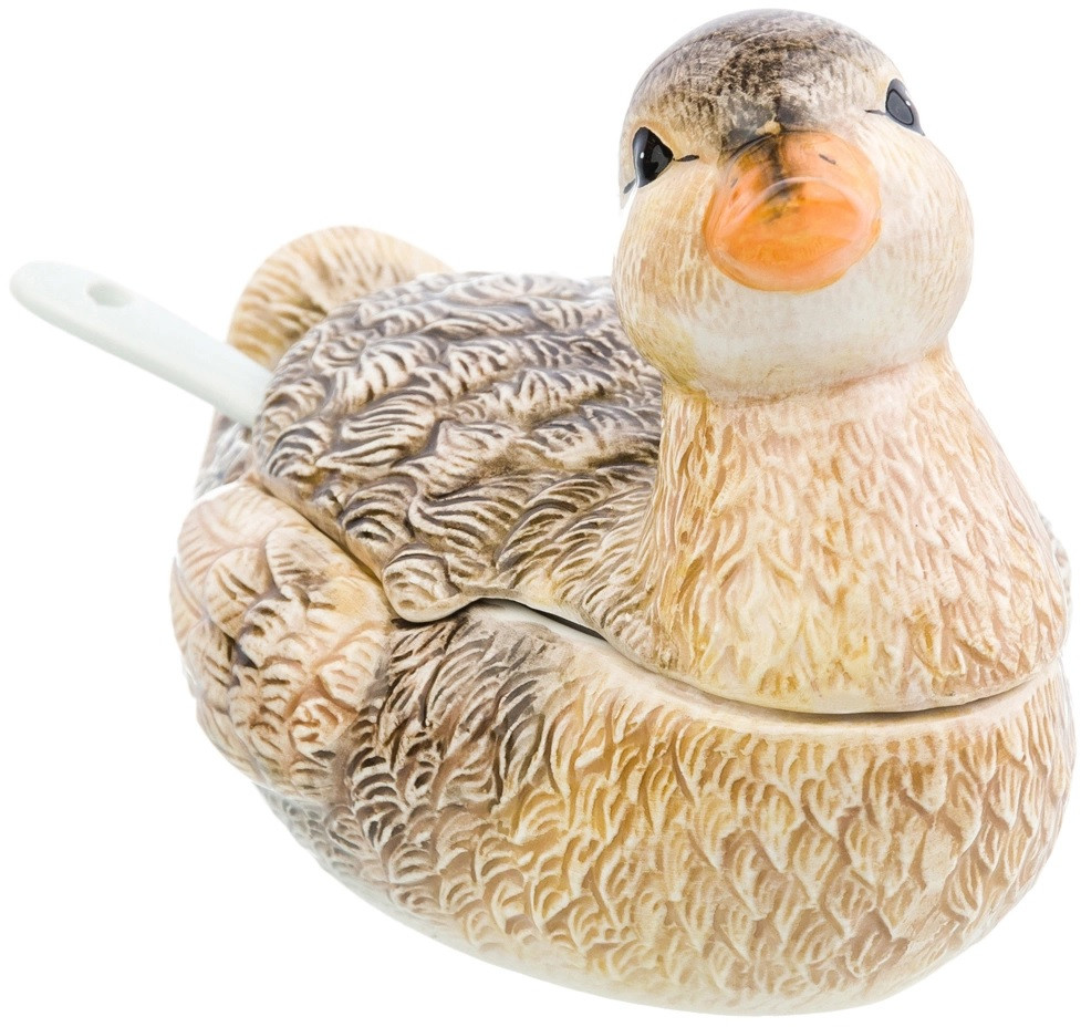 Elan Gallery Сахарница-икорница «Уточка»В данный момент этот товар отсутствует в продаже. Возможно, у нас найдется аналогичный или похожий товар здесь. Серия: Уточки Сахарница «Уточка» объемом 200 мл с крышкой и ложкой украсит Ваш стол и подойдет для использования под сахар, варенье, икру и многие другие вещи. Выполнена из высококачественной керамики. Уточка цветная и детализированная, красивая фигурка хорошо впишется в интерьер. Удобна в использовании благодаря крышке и ложке. Поставляется в прочной картонной упаковке. |