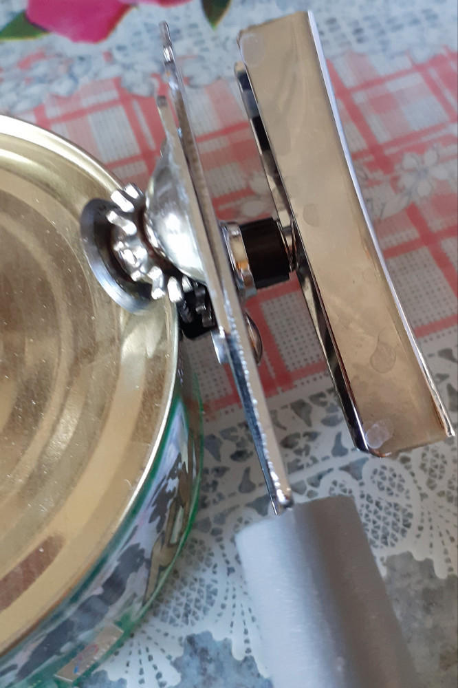 Отличный нож. Поняла, когда мне сестра подсказала, что ручку надо держать почти параллельно стенке банки. Два винта должны полностью совпадать зубцами.
