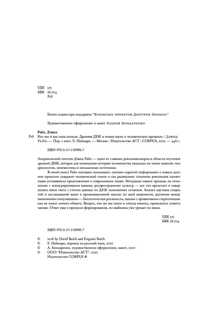 Кто мы и как сюда попалиВ данный момент этот товар отсутствует в продаже. Возможно, у нас найдется аналогичный или похожий товар здесь. Серия: Книжные проекты Дмитрия Зимина Но, несмотря на эти сходные черты, неандертальцы и современные люди все же очень различались. В одной статье 1950-х годов как-то написали, что на неандертальца в ньюйоркском метро не обратили бы никакого внимания, будь он отмыт как следует и одет по-современному. Но на самом деле обратили бы, потому что он сильно выделялся бы выступающими надбровными дугами и впечатляющим мускулистым телом. |