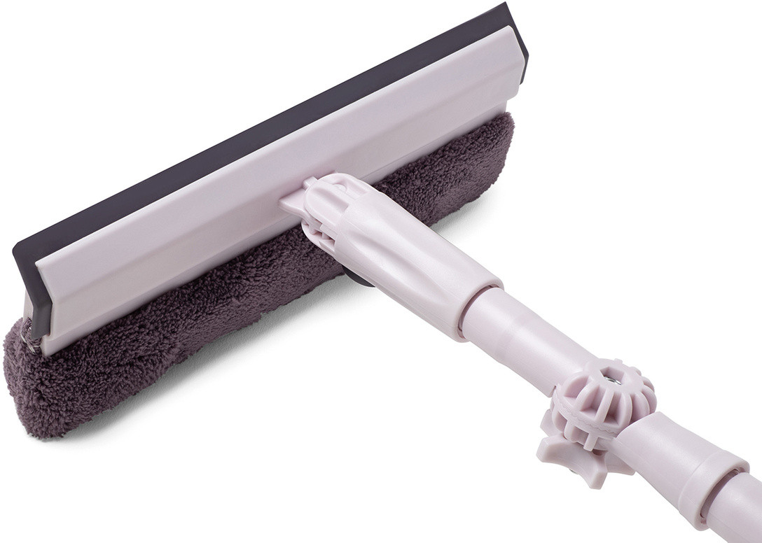 Стеклоочиститель понравился. Можно под нужным углом установить как насадку с микрофиброй и с водосгоном (например, при необходимости помыть высокое окно на балконе справа-слева, когда основное окно балкона открывается только в середине), так и выбрать удобный наклон от основной ручки. Все фиксируется прочно – и кнопка для наклона насадки, и поворот наклона от основной ручки, и телескопическое удлинение ручки. Качество водосгона хорошее – мягкая пластина плотно прилегает к стеклу и качественно сгоняет воду.