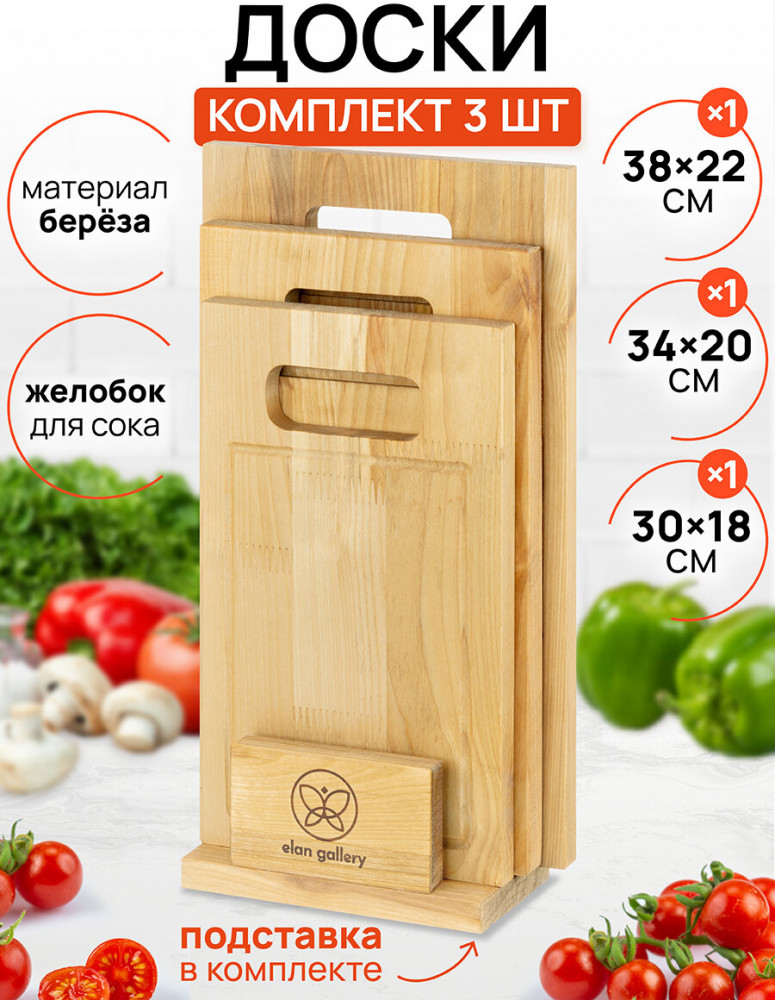 Elan Gallery Набор досок разделочных с подставкой-20% +291 разные размеры толстые красивые тяжелые подставка видны стыки
