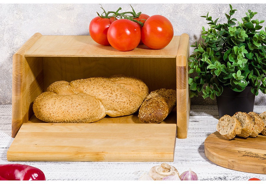 Давно искала хорошую деревянную хлебницу. Заказала эту и не пожалела. Красивая, качественная, удобная. Дверца легко открывается, 3 булки хлеба помещаются. Спасибо, Флип!