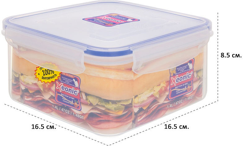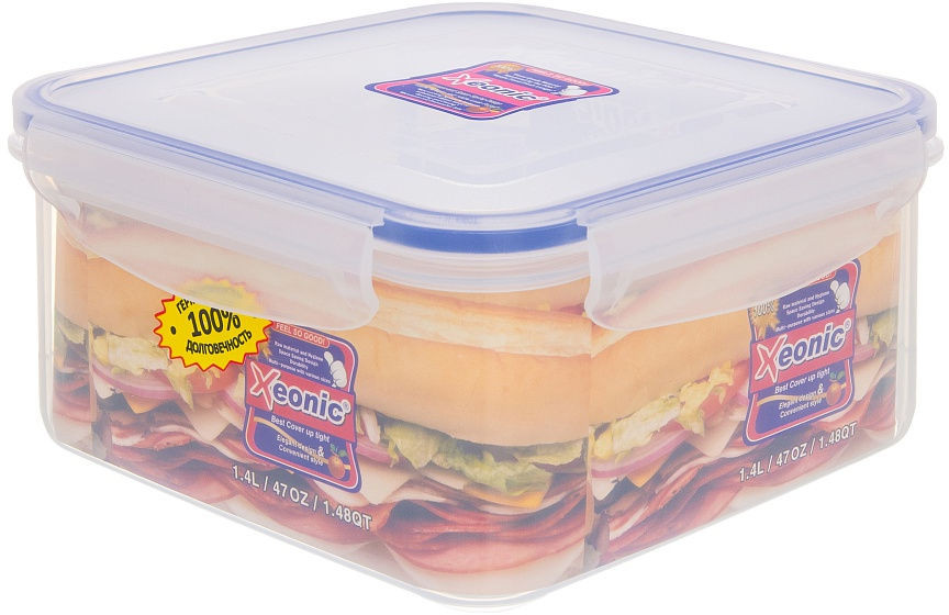 Пластиковый герметичный контейнер для хранения продуктов «Xeonic» произведен из высококачественных материалов, имеет 100% герметичность, термоустойчив, может быть использован в микроволновой печи и в морозильной камере, устойчив к воздействию масел и жиров, не впитывает запах. Контейнер не содержит Бисфенол А. Контейнер удобен в использовании, долговечен, легко открывается и закрывается, не занимает много места. Можно мыть в посудомоечной машине.