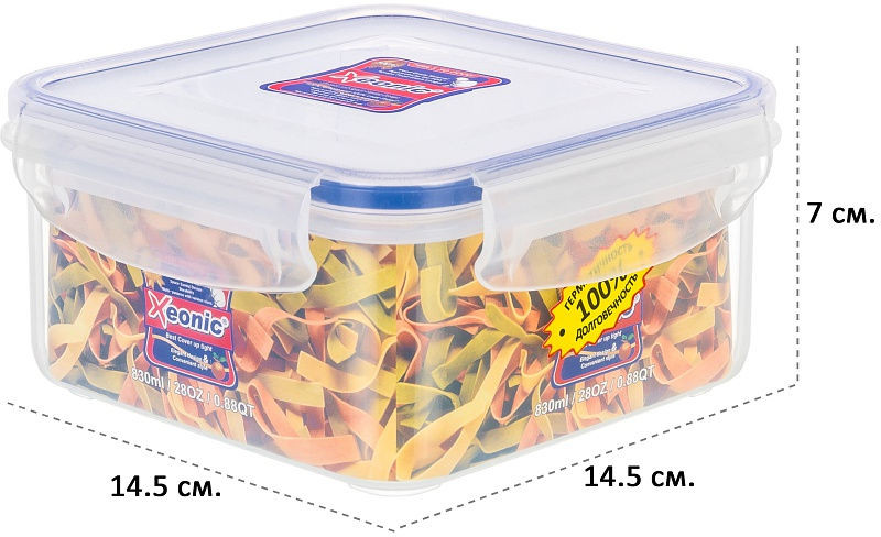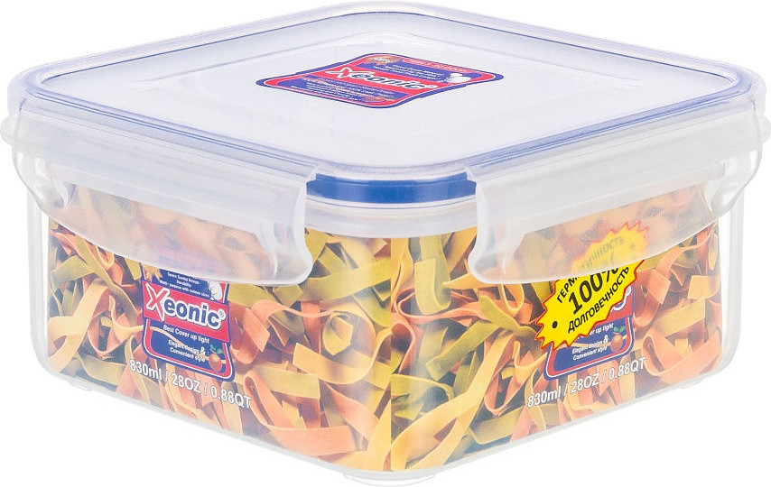 Пластиковый герметичный контейнер для хранения продуктов «Xeonic» произведен из высококачественных материалов, имеет 100% герметичность, термоустойчив, может быть использован в микроволновой печи и в морозильной камере, устойчив к воздействию масел и жиров, не впитывает запах. Контейнер не содержит Бисфенол А. Контейнер удобен в использовании, долговечен, легко открывается и закрывается, не занимает много места. Можно мыть в посудомоечной машине.