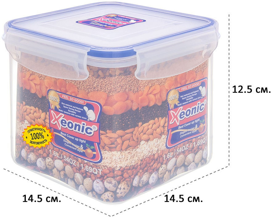 Пластиковый герметичный контейнер для хранения продуктов «Xeonic» произведен из высококачественных материалов, имеет 100% герметичность, термоустойчив, может быть использован в микроволновой печи и в морозильной камере, устойчив к воздействию масел и жиров, не впитывает запах. Контейнер не содержит Бисфенол А. Контейнер удобен в использовании, долговечен, легко открывается и закрывается, не занимает много места. Можно мыть в посудомоечной машине.
