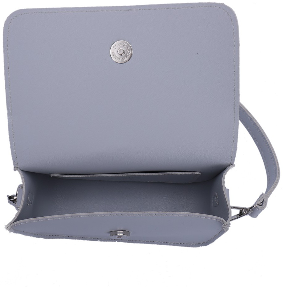 Сумка на плечевом ремне, с клапаном, имеет одно отделение на кнопке, внутри карман для телефона.