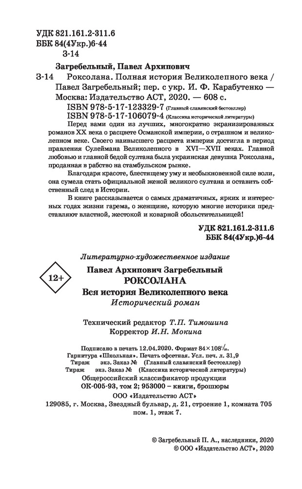 💳 Оплатить за товар можно при получении 🇰🇿 Есть бесплатная доставка по Казахстану от 1 дня 🎁 Копите бонусы с каждой покупки Серия: Главный славянский бестселлер Перед вами один из лучших, многократно экранизированных романов ХХ века о расцвете Османской империи, о страшном и великолепном веке. Своего наивысшего расцвета империя достигла в период правления Сулеймана Великолепного в XVI — XVII веках. Главной любовью и главной бедой султана была украинская девушка Роксолана, проданная в рабство на стамбульском рынке. Благодаря красоте, блестящему уму и необыкновенной силе воли, она сумела стать официальной женой великого султана и оставить собственный след в Истории. В книге рассказывается о самых драматичных ярких и интересных годах жизни гарема, о женщине, которую многие историки представляют властной, жестокой и коварной обольстительницей! |