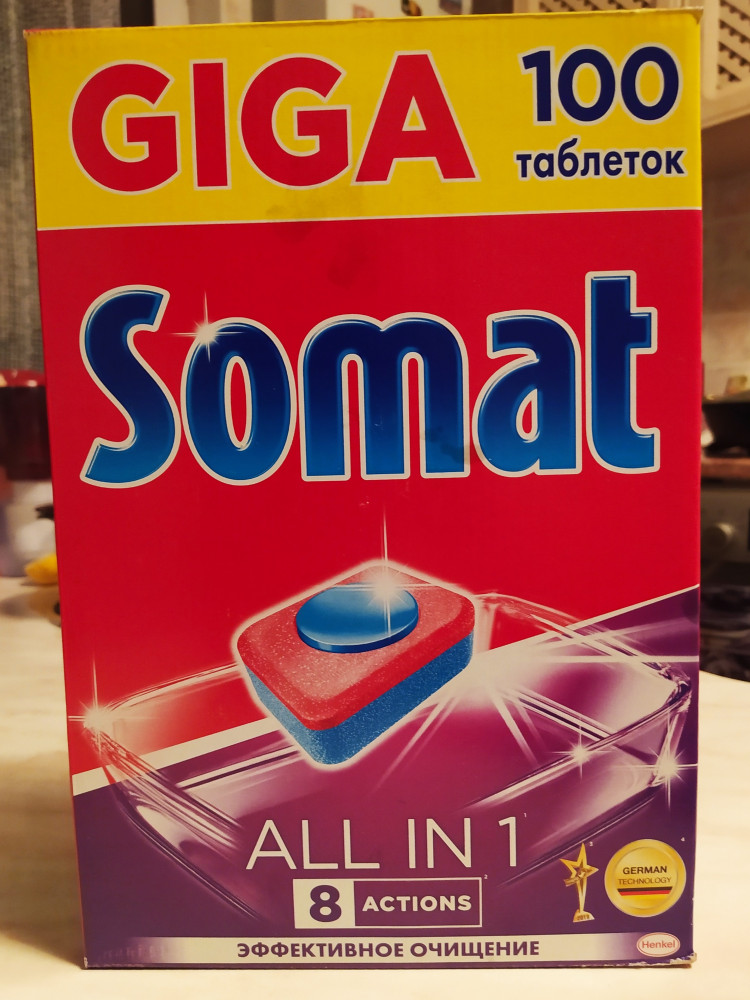 Пробовали самые разные таблетки для посудомоечной машины, somat больше всего нравятся! Отлично отмывают, запах ненавязчивый, посуда блестит👍