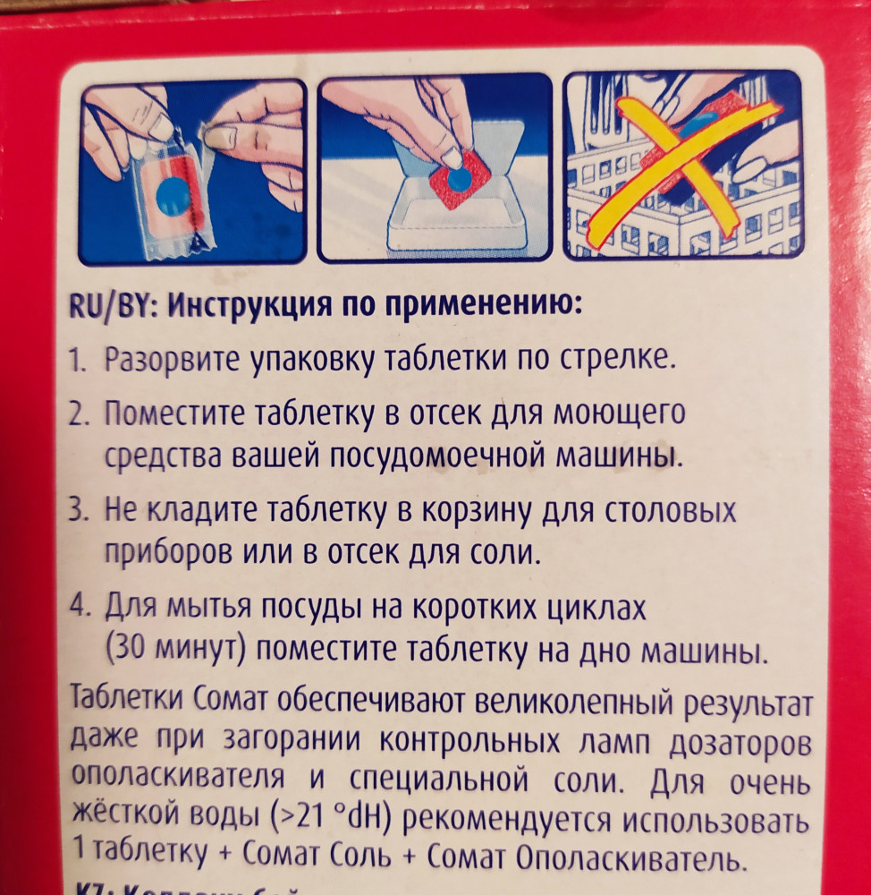 Предыдущий отзыв не корректен, на упаковке написано что таблетки в индивидуальной упаковке и ее надо снять, если таблетка полностью не растворилась значит нужен более интенсивный режим либо поделить таблетку пополам (что делает их ещё экономичнее)! Прежде чем что то покупать и критиковать нужно сначала полностью ознакомиться с инструкцией. Удачных покупок! А таблетки кстати очень даже хорошие, не запаха не разводов. Если у вас остаётся запах или развозы то ваша машинка нуждается в чистке и в замене фильтра, если вода в вашем доме очень грязная, советую купить ещё и соль