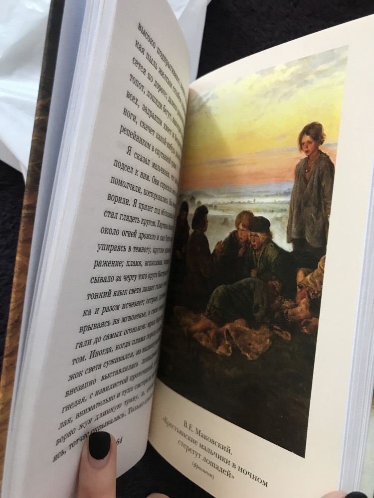 Однако расположение иллюстраций странное, например, в рассказе "Бежин луг" есть невероятно атмосферная иллюстрация, где были те крестьянские детки, но почему то на следующей странице идёт вообще иллюстрация к другому рассказу, а замечу, что этот рассказ ещё не окончился. Короче говоря, теряется погружение. Думаю, это будет сильно влиять на восприятие рассказов для детей, кончено, если сегодня детям допускают читать "Муму")